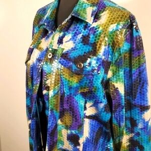 Notations Jacket, Blue Green purple, Shiny, Button Up, Pockets