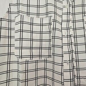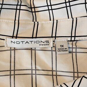 Notations sleeveless collared blouse black white checked stripe size 1X