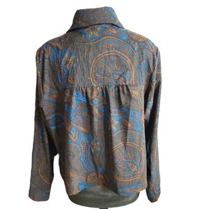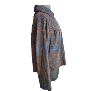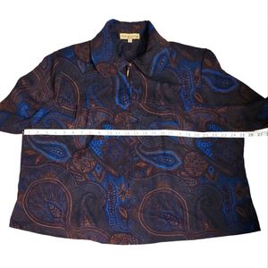 Notations paisley print,zip front jacket.Fabric is soft and smooth to the touch.No lining.Size XLarge