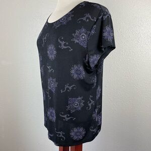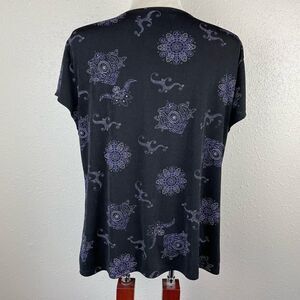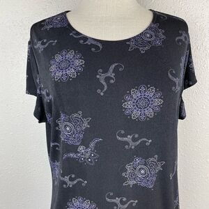 Cute top by Notations with a glittery sparkle. It features a stretch fit and measures 21 inches armpit to armpit laying flat and is 24 inches in length.