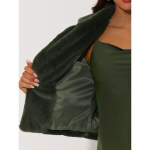Notch Collar Long Sleeve Open Front Faux Fur Fluffy Cropped Jacket Army Green