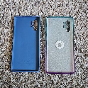 Bundle of two Note 10 Plus phone cases. The blue one is a soft silicone case. The other is a purple and blue ombre with a built in ring holder.