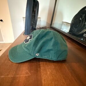 Stylish green cap featuring a shamrock logo. Perfect for casual wear.