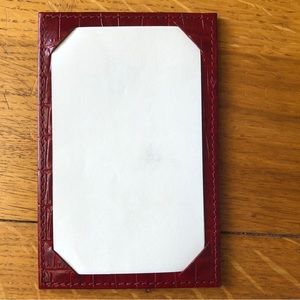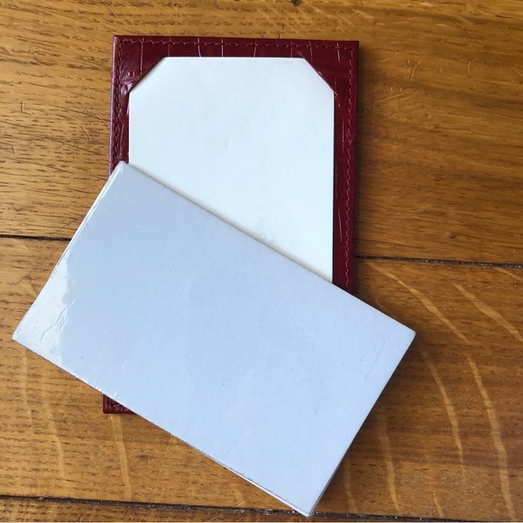 Beautiful deep red alligator embossed note/card holder. Stiff holder makes it easy to write notes on the go. Comes with shrink wrapped package of 25 notecards (3 x 5 inch). Like new condition - never been used.