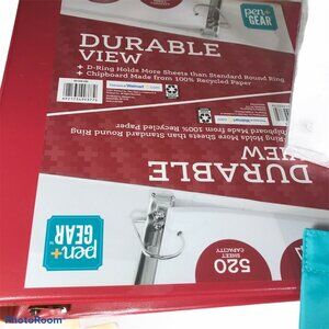 Notebook Lot Red 520 Sheet/Red 175 Sheet Notebook Paper Dividers Protectors. Condition is New. Pen and Gear Lot includes a red 520 sheet notebook, a red 175 sheet notebook, 150 sheets college ruled notebook paper, 150 sheets wide ruled notebook paper, a solid binder pouch, 3 packs of 5 each 5 tab dividers, a pack of 25 sheet protectors, and 10 plastic pocket folders, 8 yellow and the other two are various colors. Smoke free home. Please let me know if you have any questions. Thank you. 28