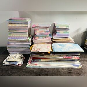 Beautiful stationery set with a floral notebook, decorative stickers, and colorful heart sheet. Includes a pink pen.
