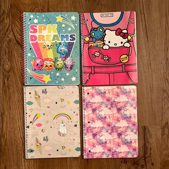 Shopkins, Hello Kitty, caticorns/icecream cones, and clouds wide ruled paper.