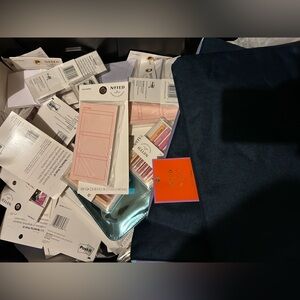 Full medium box of all new noted by post it items. There are pens notebooks lab top cases, post it. There will be repeats. The pens alone are $16 retail each. This is a way better deal as i had 5 items posted for $20, this will be a 5 lb box of items so more than 5 items! Great for teachers or everyone who loves stationary like me lol