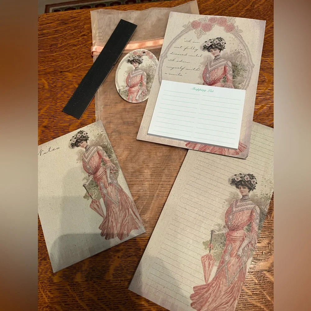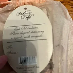 This cute little bags contains 3 note pads and a stripe of magnet that you can apply to the back of them turning them into refrigerator pads. Great for a gift!! Give it as a secret Santa present or white elephant gift