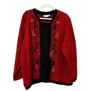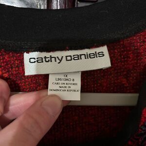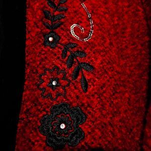 Cathy Daniels Women’s Size 1X Festive Floral Embroidered Top Red Black NWOT