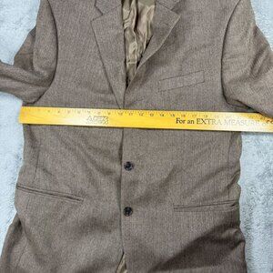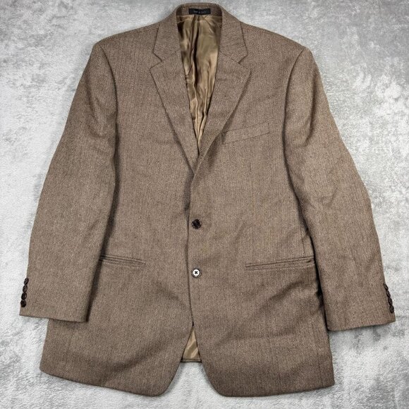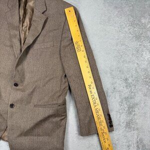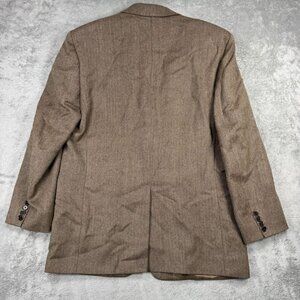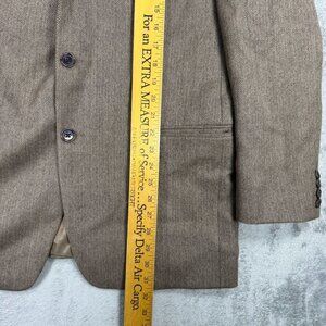 Classic Lauren Ralph Lauren men’s wool sport coat blazer a brown herringbone pattern. Fully lined with a two-button front, rear vent, and notched lapels. Features four-button cuffs. Tailored fit for a timeless, professional look — perfect for business, events, or vintage-inspired styling.