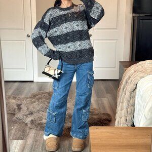 Vtg 2000s sweater scandi fall winter fashion, cottagecore geometric cabin outdoor classic style, retro streetwear Y2K
