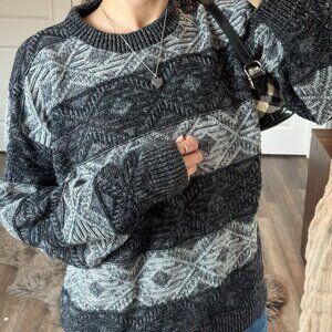 True vintage Amati knit sweater in a gray geometrical pattern. 90s vibe, perfect for fall/spring and winter layering or Y2K streetwear.