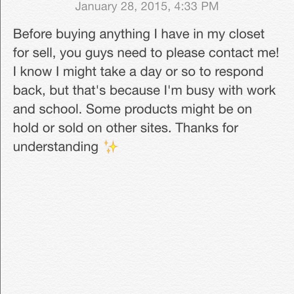 Thanks to those who understand, most of the time I'm busy with several things, wether it's school, work, or just a busy day. I try my best to reply to everyone's questions on here. But I don't want to be that type of seller that doesn't ship the thing you guys have bought, you guys need to PLEASE CONTACT ME BEFORE BUYING.