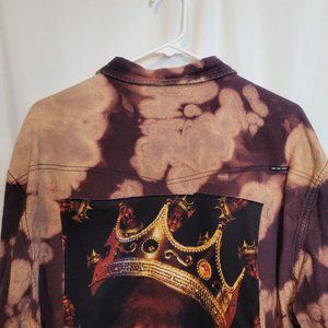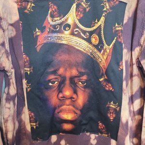 Notorious BIG Biggie Smalls Upcycled Bleached Woven Shirt Button Up Vans XXL