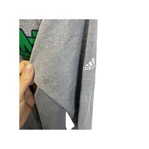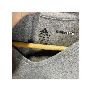 Show your love for the Notre Dame Fighting Irish with this gray long sleeve T-shirt from Adidas. Made with Climalite technology, this shirt is perfect for basketball and football seasons. It is officially licensed and features the team's logo on the front. The shirt is made in Honduras and is available in size L for women. Perfect for any fan of the team, this shirt is a must-have for college game days or everyday wear. in excellent. condition