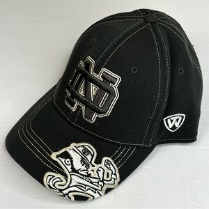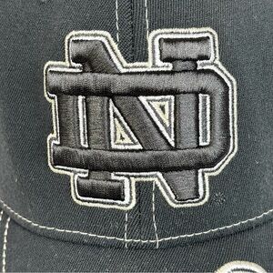 Stylish black cap with Notre Dame logo. Features white stitching and emblem.
