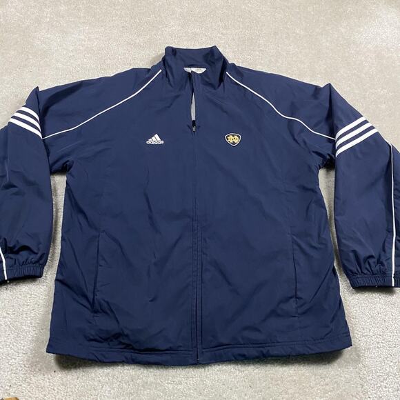 Notre Dame Fighting Irish Jacket Mens 2XL Navy NCAA Football Adidas Windbreaker