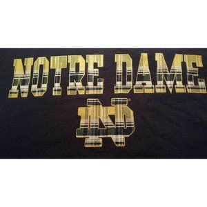 Great Footlocker Notre Dame Fighting Irish by Team Edition Apparel short sleeve crew neck T-Shirt. Navy Blue with plaid yellow and blue logo. Size Medium. Good used condition See photos for best observation of condition as well as measurements.