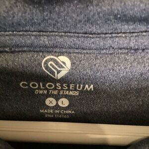 The product is a women's extra large (XL) blue pullover by Colosseum Athletics, featuring the Notre Dame Fighting Irish team logo. This 1/4 zip pullover is perfect for football fans and is ideal for wearing in the regular season. Made for supporters of the team, this apparel is a must-have for any fan looking to show their team spirit in style.