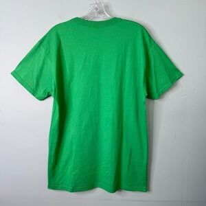 Notre Dame Luck of the Irish FIghting Irish Russell Athletic Graphic Tee Size M. Kelly green short sleeve cotton blend tee with officially licensed Notre Dame grahpic on front with the Fighting Irish and shamrocks and the phrase, "Luck of the Irish".