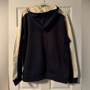 Stylish Notre Dame performance jacket. Features navy body with cream accents. Full zip closure. Ideal for active wear.