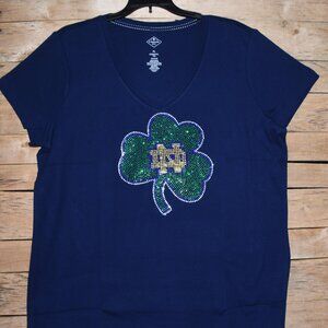 Notre Dame rhinestone navy short sleeve Vneck Shirt XS S M L XL XXL1X 2…