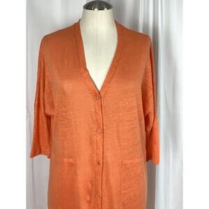 Notshy Cashmere Neva Orange Linen Long Dress Cardigan V Neck Button Up L/XL