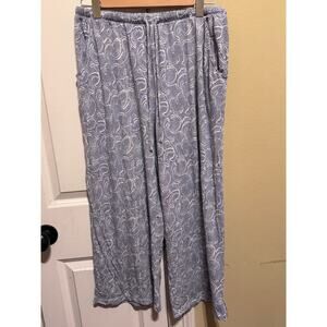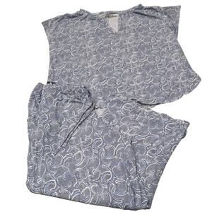 Nottibianche Split Round Neck Short Sleeve Pant 2 Piece Pajama Set Blue White M