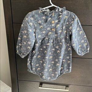Nou Nelle size 2 Blue/green Floral Romper with grey knit Sweater