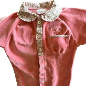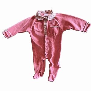 Noukie’s Footed Coral Velvet Pajamas Romper with Collar Accent Pocket Sz 12 Mos