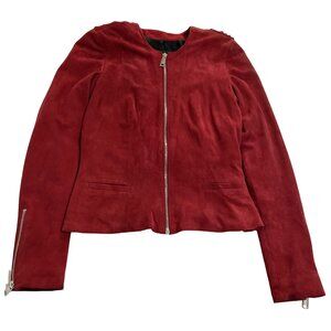 Nour Hammour Fringe Lamb Leather Jacket in Red