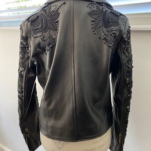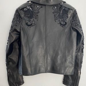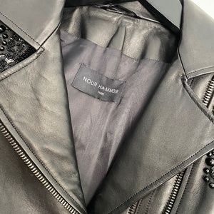 Nour Hammour Sophia Zip-Front Leather Jacket w/ Studded Embroidered Sleeves