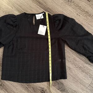 Meet our Lydie Top: black, long-sleeved top. Cut in a straight fit, defined with a round neck and puffed sleeves. Design details include a back slit closure and buttoned cuffs.