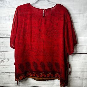 Nouveau Monde Womens Plus Size 2X Lined Red Chiffon Blouse Short Sleeve Shoulder Pads