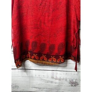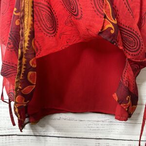 Nouveau Monde Womens Plus Size 2X Lined Red Chiffon Blouse Sheer Shoulder Pads