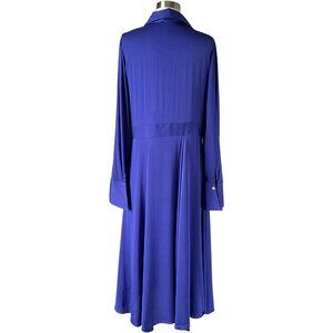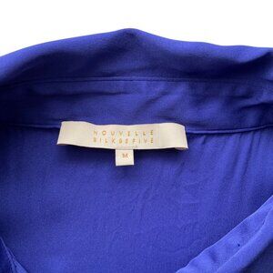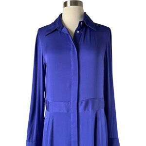 Nouvelle Silk95Five Le Marais Dress Blue Silk Midi Long Sleeve Size M