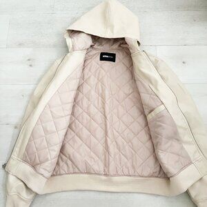 Nova Men Faux Vanilla Hooded Leather Bomber Jacket Size Large