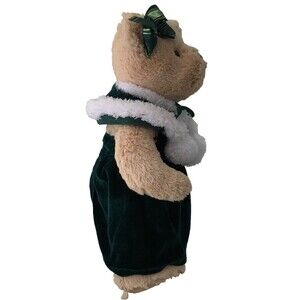 Nova Plush The Cherish Collection 2011 Bear Green Velvet Dress With White Trim.