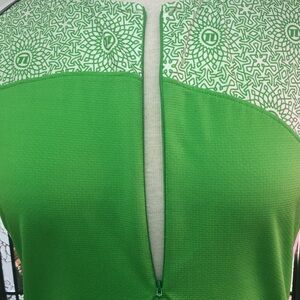 V-Neck Zip Front Sleeveless Cycling Jersey with 3 Pockets across lower back with one having a zipper closure.