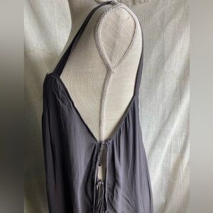Features: sleeveless, square neck, swim beach cover up, 100% rayon, hand wash cold, dark charcoal / gray color, summer