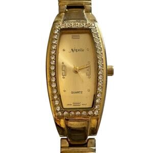 Novelle Quartz Japan Movement Watch Analog Gold Tone Rhinestone Band Working