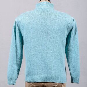 Novelli 50s Style 55% Silk Angora Robins Egg Blue Collar Cable Knit Sweater P/L