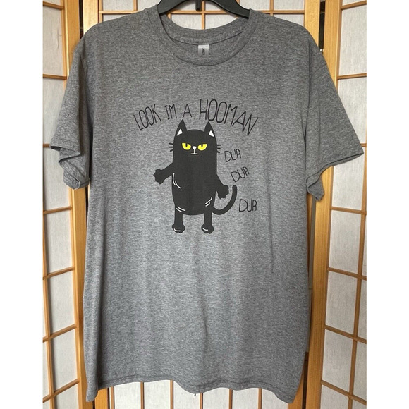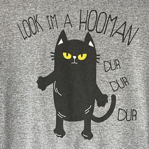 Novelty Cat T Shirt "Look I'm a Hooman Dur Dur Dur" Large