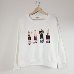 Good condition. Lots of life left. Has a small stain on hem pictured with dime as a reference to size and dimension. So fun, sequin novelty champagne sweatshirt!!!