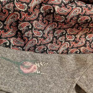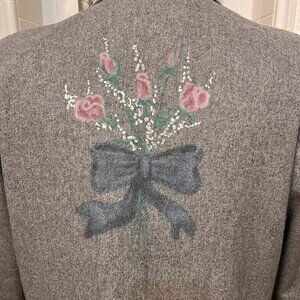 Novelty Hand Painted Gray Bunny Rabbit Wool Jacket. Sz L-!X. Paisley Lining. GB