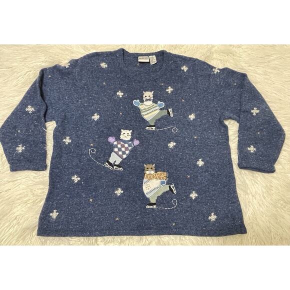 Novelty Holiday Winter Sweater CATS ice skating Volup 1X