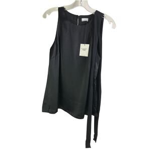 November Four Top Womens Size XS Black Shoulder Tie Sleeveless Button Back NWT Classic Simple Luxury