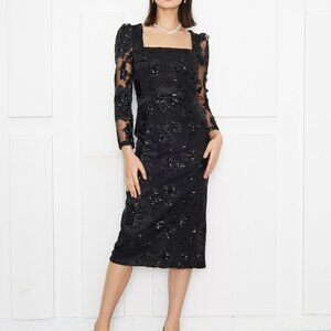 Novena ZF Long Sleeve Midi Tulle Column Regular Evening Dress zff1081
