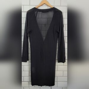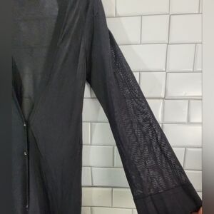 Novespazio Ladies Black Lightweight Cardigan Semi Sheer Midi Length V-Neck Class